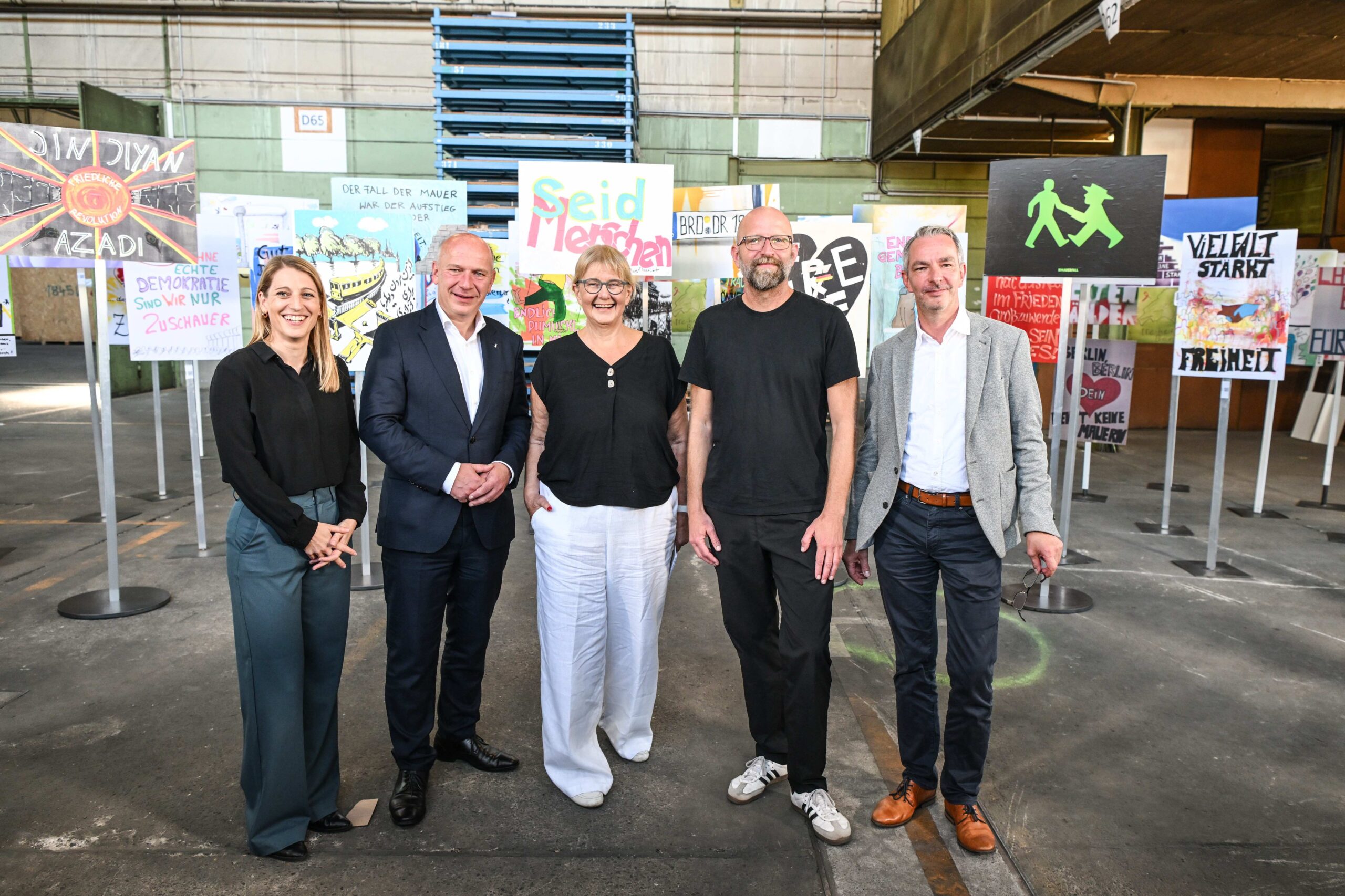 Simone Leimbach, Head of the Exhibition and Event Department at Kulturprojekte Berlin; Kai Wegner, Governing Mayor of Berlin; Marianne Birthler, former Federal Commissioner for the Records of the State Security Service of the former GDR; Moritz van Dülmen, CEO Kulturprojekte Berlin; and Frank Ebert, Berlin’s Commissioner for the Reappraisal of the SED Dictatorship.