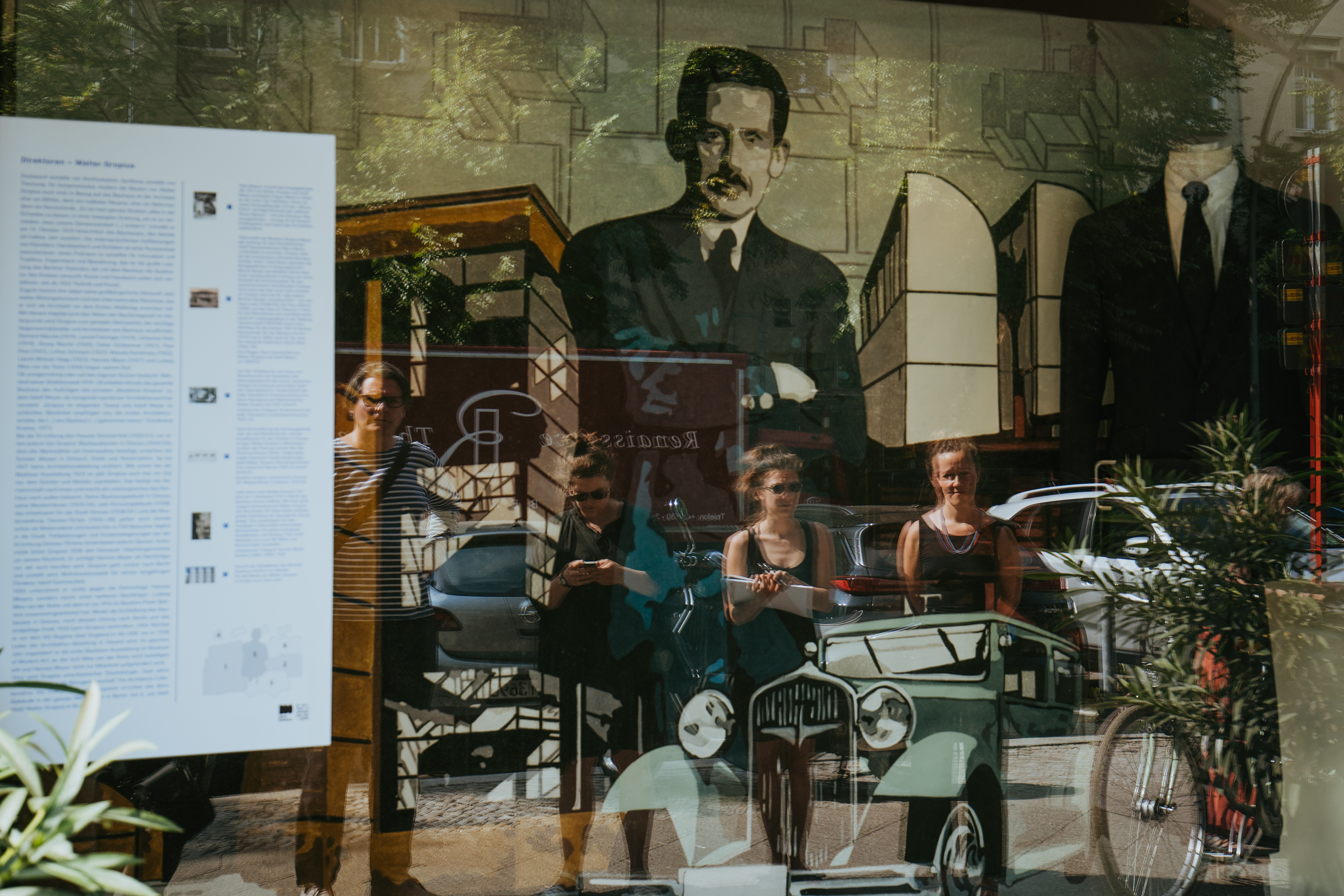 Das ‚Bauhaus in 16 Collagen’ stellt in Schaufenstern in der Kantstraße, um den Savignyplatz und in der Potsdamer Straße die Geschichte und das Bauhaus vor: So geht es beispielsweise im Bücherbogen am Savignyplatz um „Reklame und Druckerei – Herbert Beyer“, im Gewandhaus Berlin in der Knesebeckstraße erfährt man mehr über den Direktor Walter Gopius und bei hering berlin in der Potsdamer Straße steht die „Keramikwerkstatt – Marguerite Friedlaender-Wildenhain, Gerhard Marcks, Otto Lindig“ im Mittelpunkt. Die handwerklich ausgeführten Collagen der Theatermalerin Jacqueline Teschner erzählen vom Leben und Lernen am Bauhaus, von den Werkstätten, deren Protagonist*innen und Designversuchen sowie den Produkten, die daraus hervorgingen. Kostenlose Führungen ergänzen das Angebot.