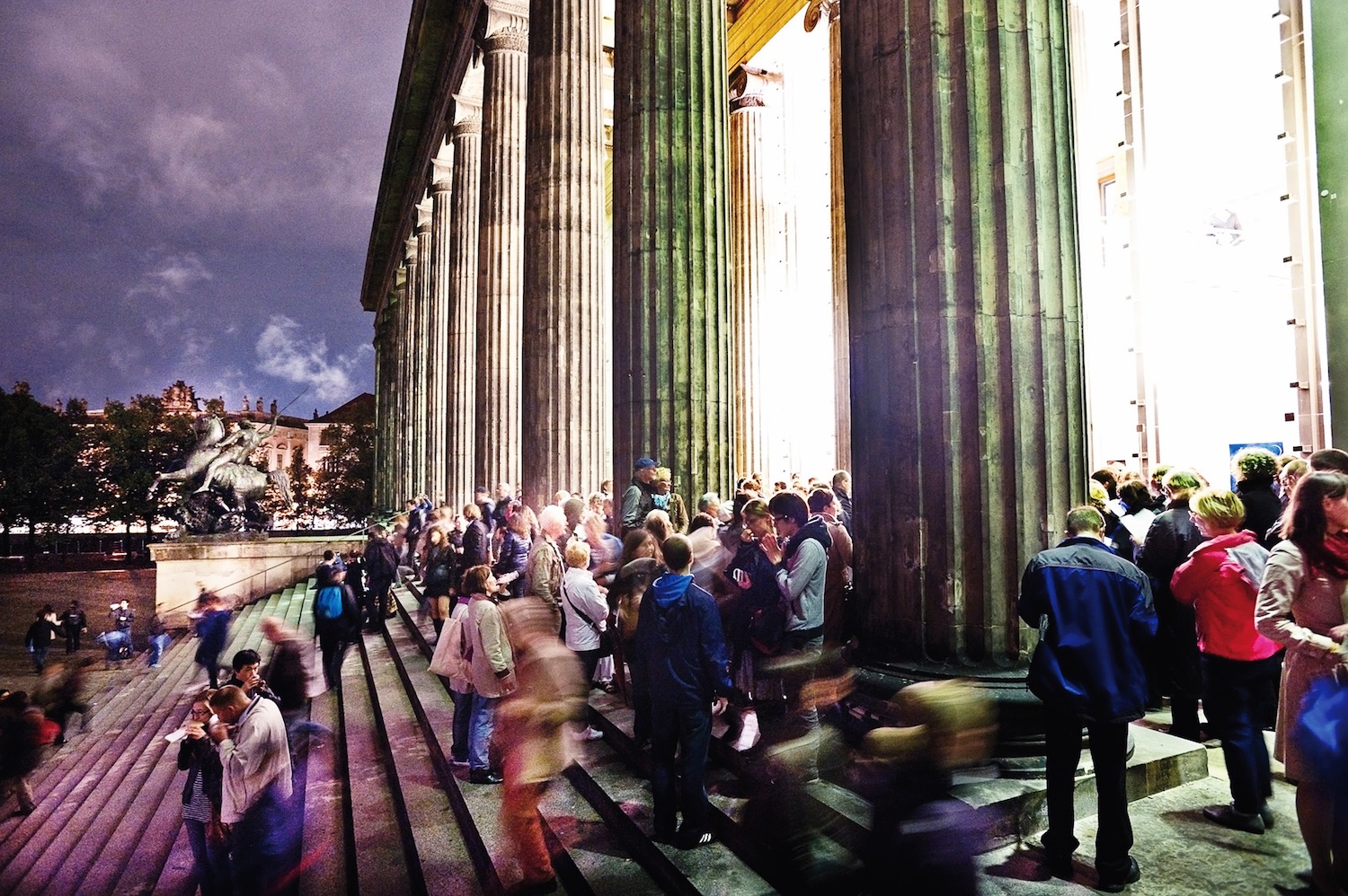 Die James-Simon-Galerie, das neue Entree zur Museumsinsel, zeigt ihre erste Sonderausstellung zur Geschichte des Abgusses von der Antike bis zur Kunst der Gegenwart. Auf der imposanten Treppe tanzt zur Eröffnung der Langen Nacht der Museen das Landesjugendballett.