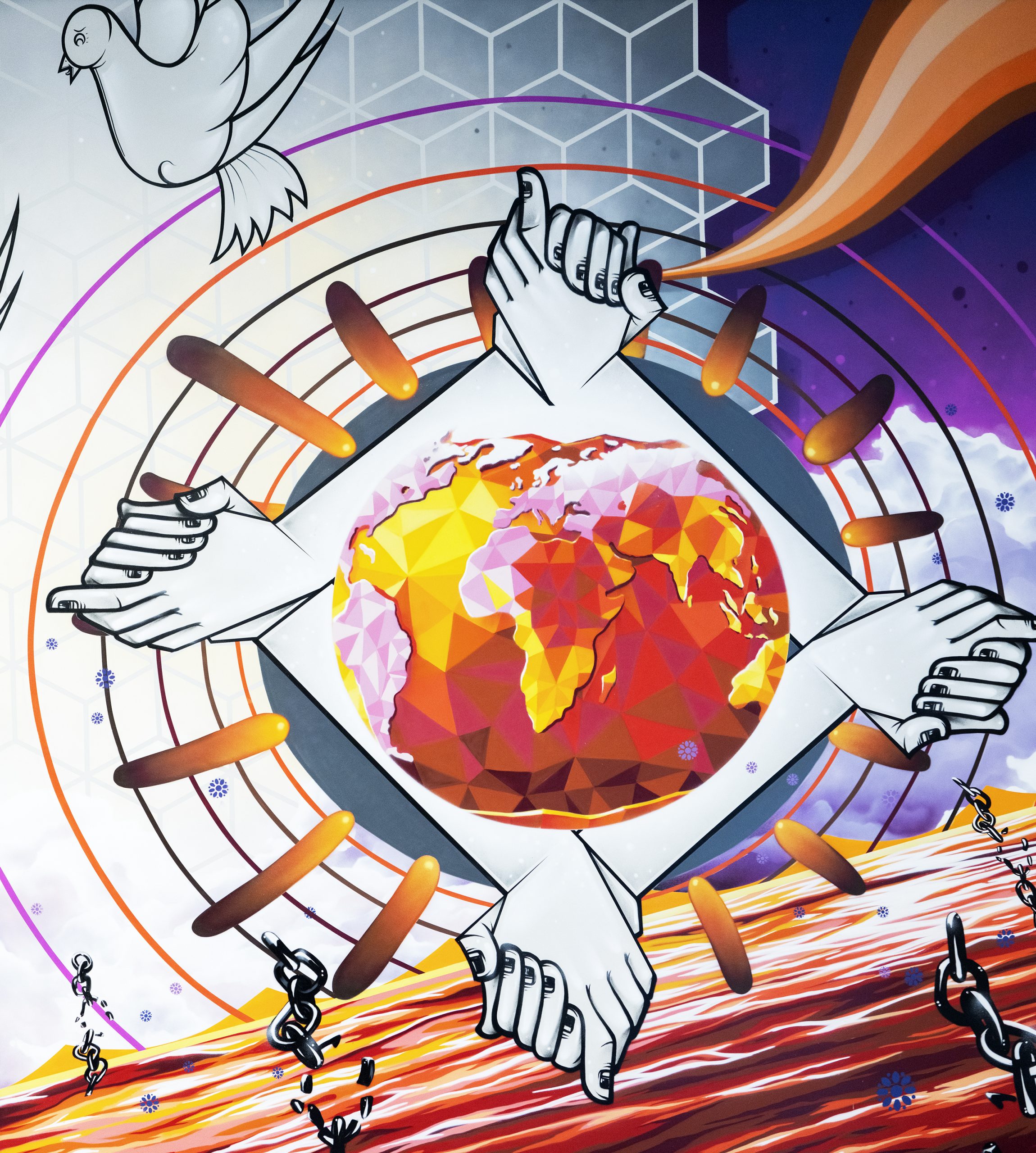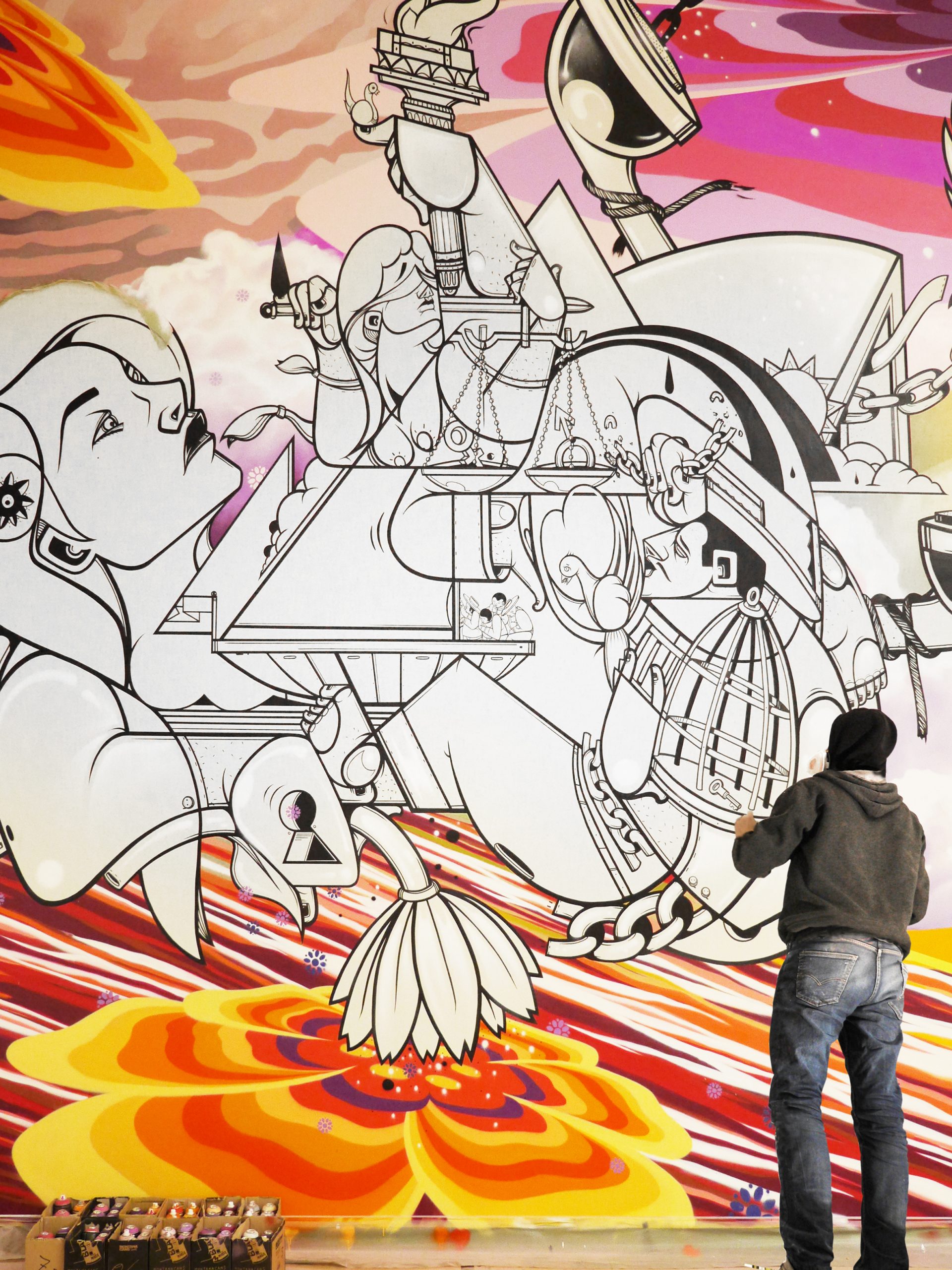 Das Wandbild wurde von der international renommierten Kuratorin und Gründerin von Urban Nation, Berlins Museum für zeitgenössische Urbane Kunst, Yasha Young, kuratiert. Realisiert wird es von dem Urban Artist Duo How and Nosm; die Zwillingsbrüder sind in Deutschland aufgewachsen und leben seit 1999 in New York.