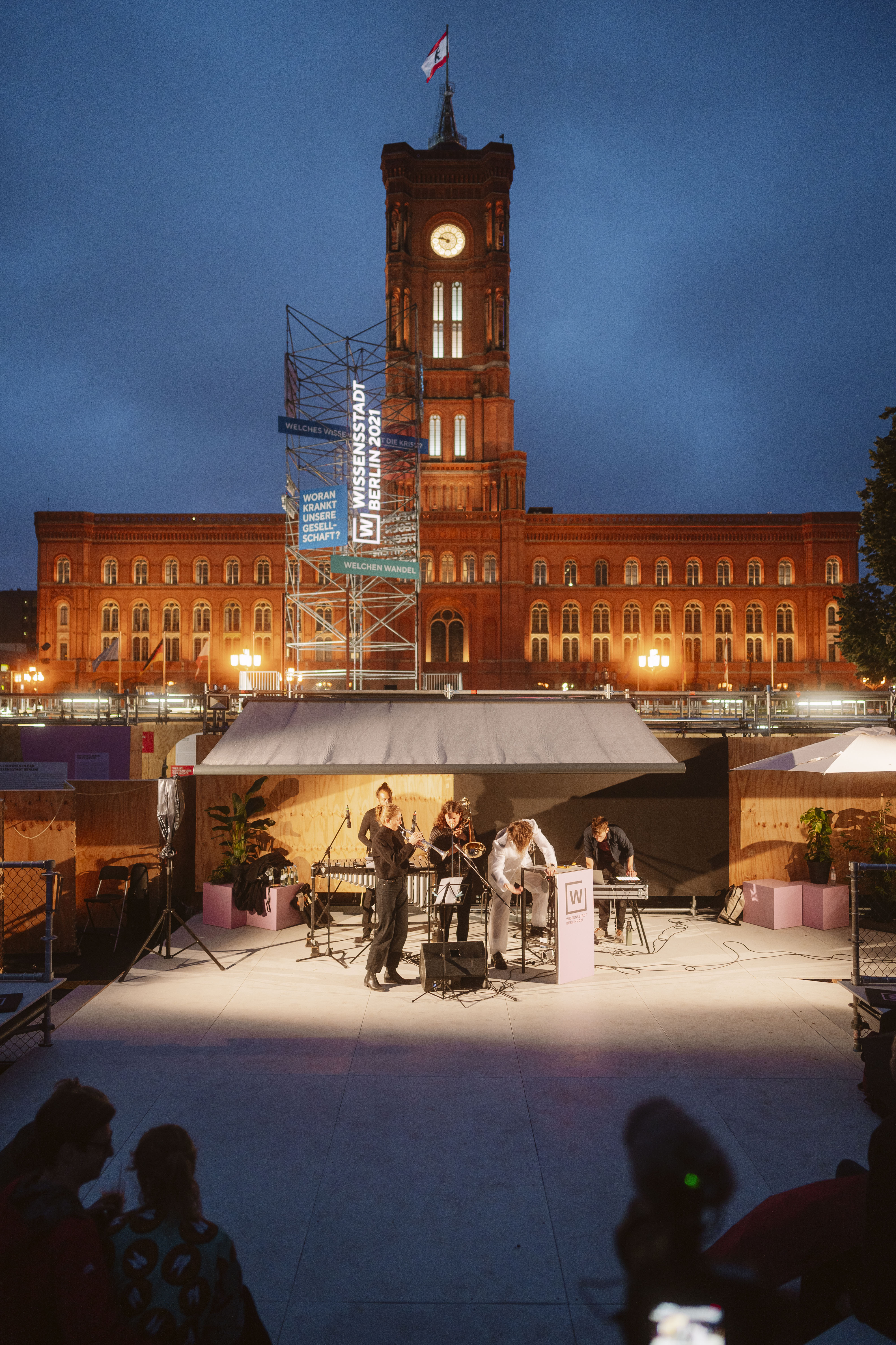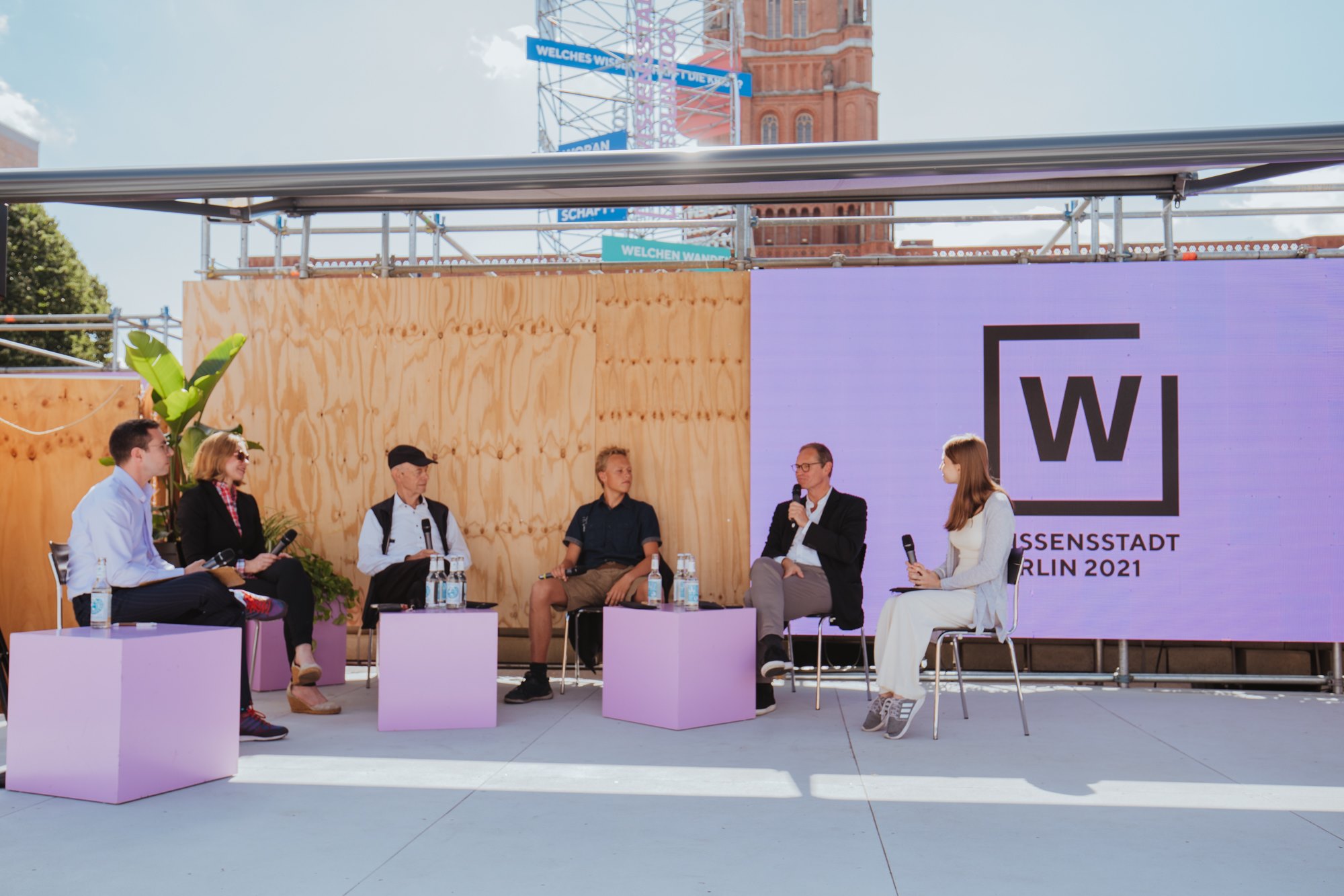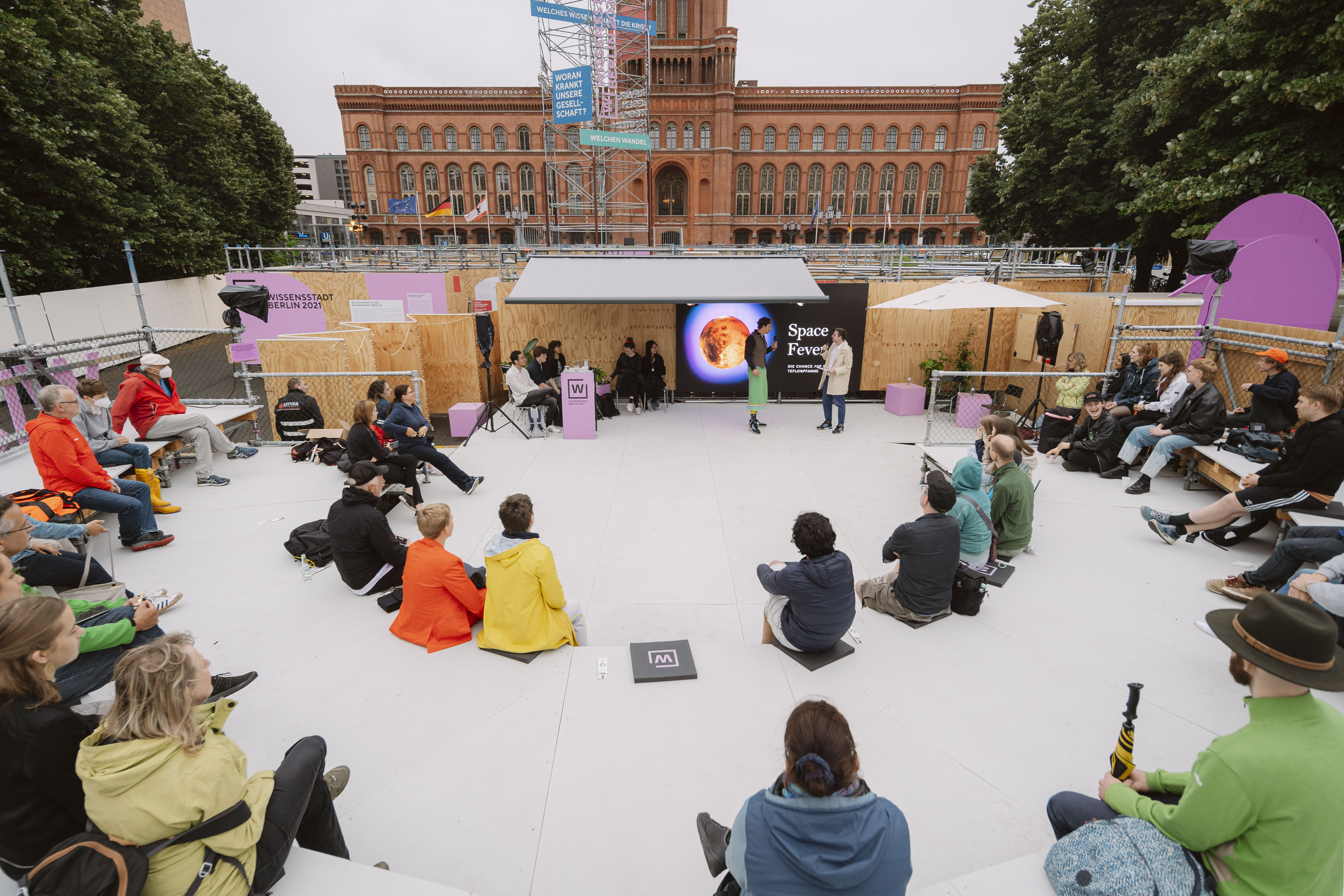 Für das Gemeinschaftsprojekt Wissensstadt Berlin 2021 haben sich auf Initiative des Regierenden Bürgermeisters von Berlin und Wissenschaftssenators Michael Müller und koordiniert von Kulturprojekte Berlin über 70 Institutionen aus Wissenschaft und Forschung zusammengeschlossen. Bis November richten sie berlinweit über 100 eigene und gemeinsame Projekte aus – im digitalen Raum, in den Institutionen selbst, genauso wie im Stadtraum. Der Platz vor dem Roten Rathaus bildete das temporäre Zentrum der Wissensstadt Berlin 2021.